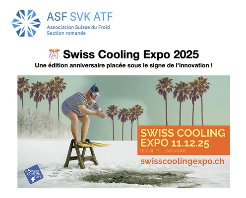 Dans le cadre de nos échanges entre association francophones du Froid, L'Association Suisse du Froid (ASF) informe les membres de l'Association Française du Froid (AFF) qu'ils peuvent participer à moindre coût au salon Swiss Cooling Expo 2025 qui se tiendra le Jeudi 11 décembre à LAUSANNE, qu'ils peuvent bénéficier du même tarif que leurs membres !